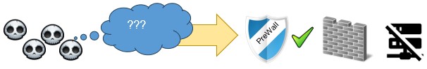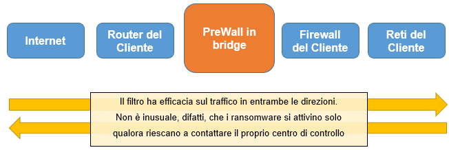 Il Dabbicco PreWall è un dispositivo che si installa fisicamente tra il Router ed il Firewall del Cliente. Questo dispositivo blocca preventivamente gli indirizzi IP classificati come pericolosi, a prescindere dal traffico generato.